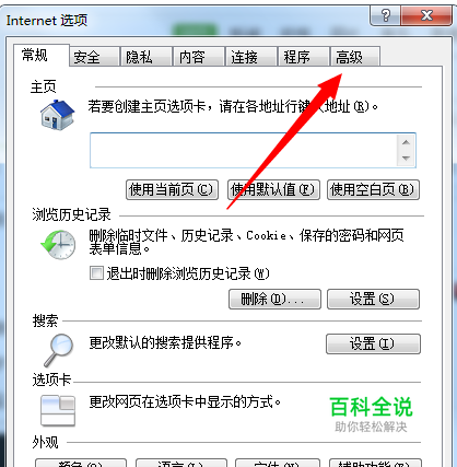 进入Internet选项对话框,进入常规界面,点击浏览记录选项下的 【删除】