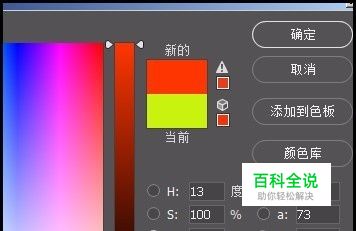 再看饱和度,饱和度可以理解为颜色的浓淡。 看拾色器这里,S这里的数值就是饱和度的数值。