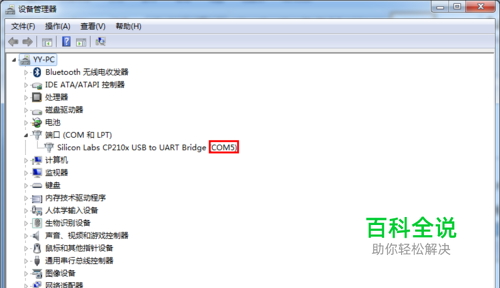 打开设备管理器,找出端口号: 注:如果没有出现,解压 PC_USB转串口驱动.zip安装驱动。