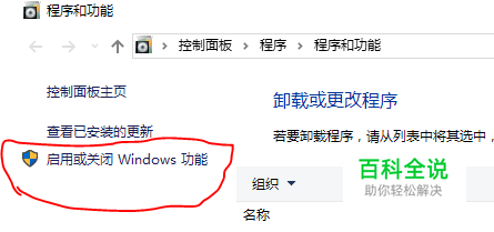 在程序和功能界面 点击 启用或关闭 windows 功能