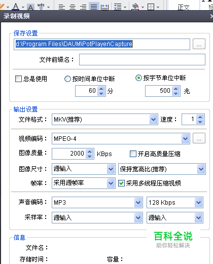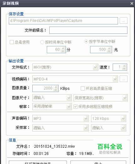 通过PotPlayer播放视频,拖拽进度条中的滑竿到你需要截取文件的起始位置,暂停播放。 点右键—视频—视频录制—点击录制视频。点击开始。然后继续播放视频。