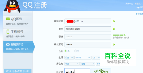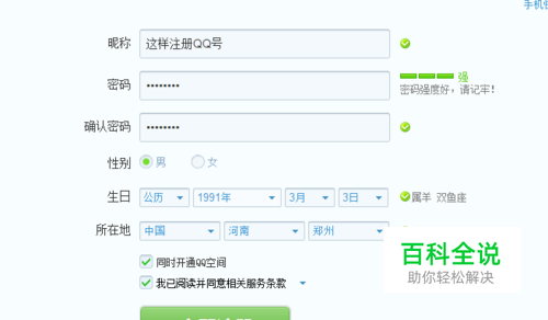 第一种注册方式.填写注册信息. 这些信息都是在以后可以更改的. 然后填写信息, 点击立即注册, 然后就会注册成功QQ号. 只需要把QQ号记录下来, 一定要记录下来哦, 然后现在你的QQ号就注册成功了, 然后就可以绑定手机号(可以防止QQ号密码忘记找到QQ的凭证之一), 然后享用QQ带来的快乐吧.