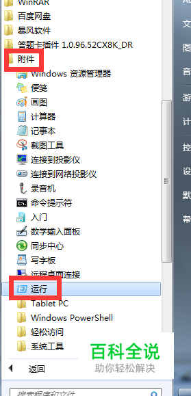 点击win图标,附件,运行。