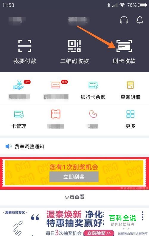 打开pos机相应的手机app,点击“刷卡收款”。