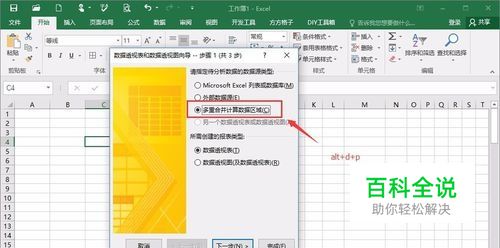 第二步,因为我们需要合并汇总以及是自定义,所以选择多重合并计算的数据透视表,然后便可以进入一个设置向导了。