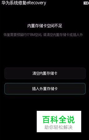 如果出现如下图:(表示无SD卡,且空间不足) ,当然这个操作也是点击“清空内置存储卡”---->“清空”---->“下一步” ,但是本人不建议操作