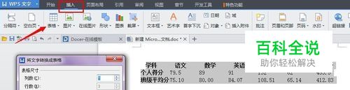 1、将WPS中文字转换成表格 a:选中需要转换文本后,在”插入“中找到”表格“选项,点开后选择“文本转换成表格”,根据需要选择生成表格的行列、需要的分隔符(本例中为“制表符”),点击确定 b:成功将文本转换成表格