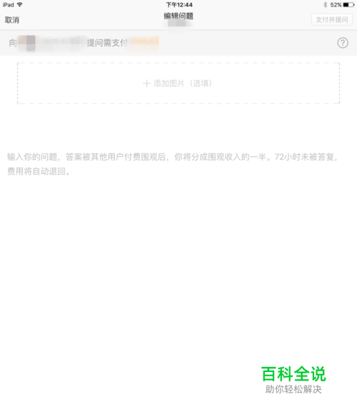 点击“向TA提问”,之后就可以在弹出界面中输入你的问题了,接受带图。