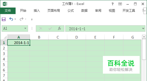 在起始单元格输入第一个日期,如在A1单元格输入”2014-1-1“,如下图所示: