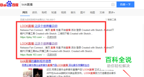 打开电脑浏览器,在搜索框输入搜索词“look直播”。如图,会匹配出相关网页,我们选择一个进入。