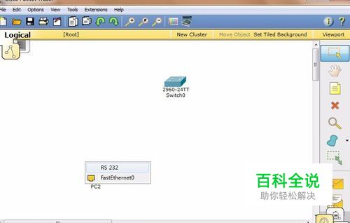 选择左下角的连接线,并选择右侧第二种,Console线。点击Pc并选择接口:RS 232。