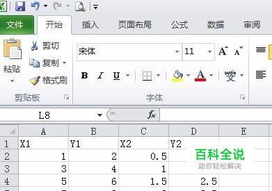 首先在excel表格里输入数据,如图所示,这里X1,Y1代表第一个函数关系, X2,Y2代表第二个函数关系,诸如此类,可以加入多个函数关系,仅以此例作为代表。