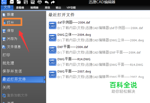 首先我们需要先打开cad文件,打开了看图软件以后点击左上角的“文件”,再点击下方菜单栏中的“打开”。