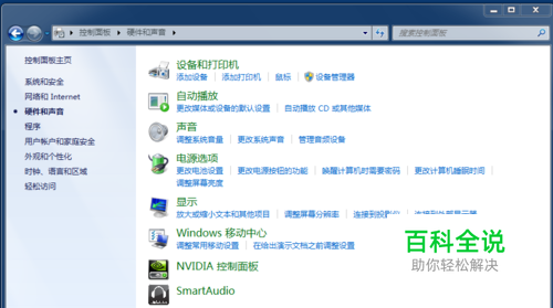 打开我们需要设置的对象控制面板,在控制面板里面找到硬件,因为电池属于硬件。