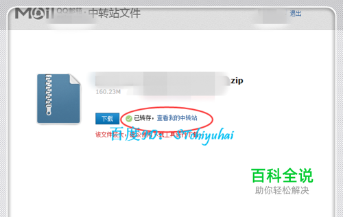 通过QQ登录自己的邮箱,在自己邮箱左边的操作栏目底部,可以看到一个“文件中转站”,在中转站中可以看到自己刚转存的文件,可以进行一些操作。