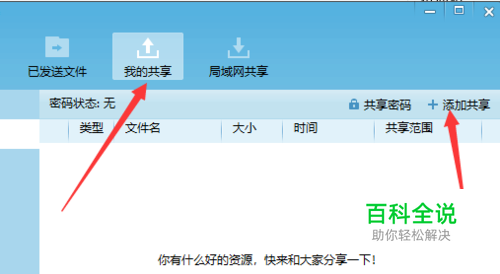 之后,进入我的共享。点击添加共享。