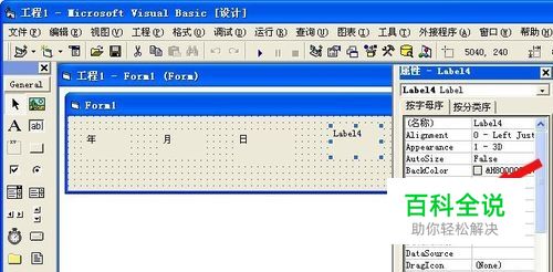 在桌面上,鼠标双击,打开VB编程软件,在左边工具栏上,单击【Label】按钮,在Form1窗口上绘制出4个标签。在这里写上年、月、日、时,如下图所示。