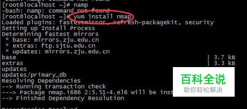 检查nmap是否安装,如果没有安装使用yum install nmap命令安装