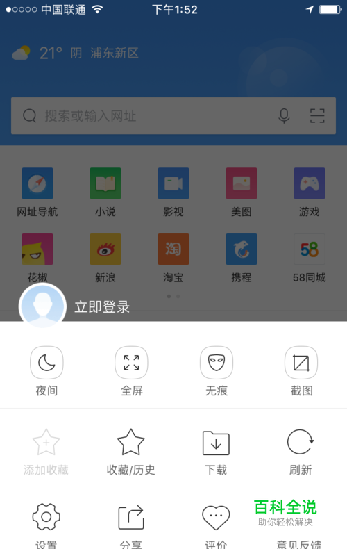 点击进入浏览器,如图,我们看到手机下面一排的位置,中间有三条线,我们点击一下