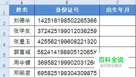 用下面一组模拟的数据,一起来学习从身份证中提取出生日期的方法。
