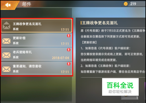 打开邮件界面后,官方会时不时送一些礼包,如图所示