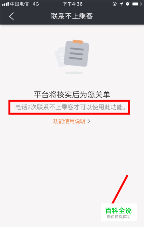 如果打过两次电话,还是联系不上乘客的话,点击页面中的联系不上他。