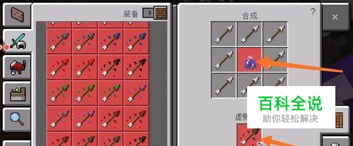 第七步,制作虚弱之箭。点击工作台,使用1瓶滞留型虚弱药水和8支箭合成8支虚弱之箭,如下图所示。