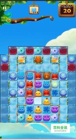 十一步消除竖排小熊,冰块剩余87.十二步消除紫色猫头鹰,冰块剩余85
