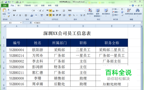 单击回车键或公式编辑栏中的确认按钮,则E3单元格就会生成一个新的字符串。