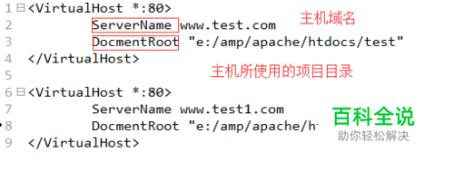 每个虚拟主机,都有一个独立的域名。通过ServerName指令配置。 还需要存在一个 不同的主机目录。表示该站点的根目录。通过指令 DocumentRoot