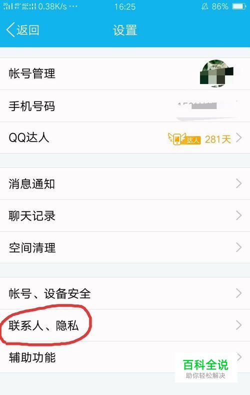 然后点击“联系人、隐私”。