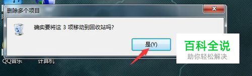 这时系统会问,是放入回收站吗?点击是,这时桌面上的三张图片就消失了。