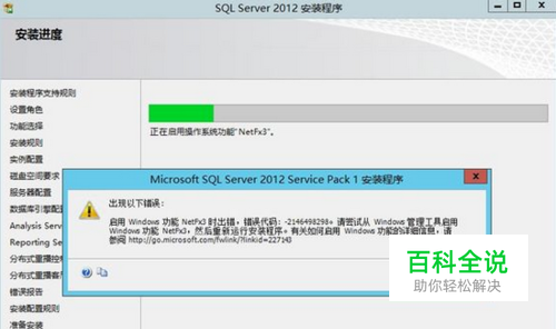 安装SQL Server 2012的过程中,报错“启用windows功能NetFx3时出错”,这是由于SQL Server 2012数据库系统的运行需要依靠.NET Framework 3.5,但是Windows Server2012默认情况下是并没有安装.NET Framework 3.5的,所以要成功安装SQL Server2012就必须先在操作系统上安装.NET Framework 3.5。
