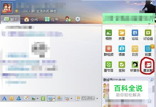 用最新版qq打开任何一个qq群,点击红圈中的【匿名聊】图标,并同意对【匿名聊】的关联授权。