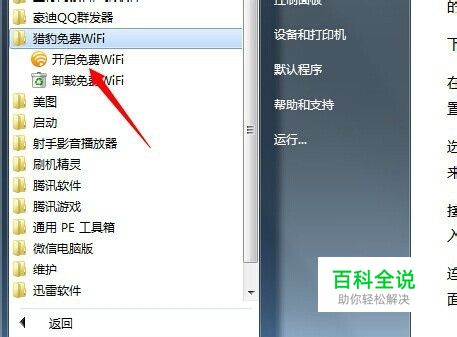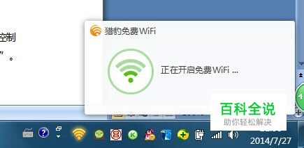 下载并安装猎豹免费wifi,展开开始程序项,点击“开启免费wifi”并等待一到两分钟。
