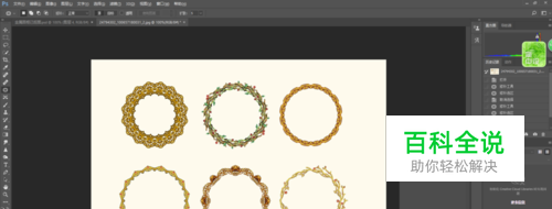 先在网上把想要抠图的原图下载好,在ps中打开,如下图,我准备要扣下图的圆框,但是细节太多,用钢笔和快速选择工具不可能扣的好。