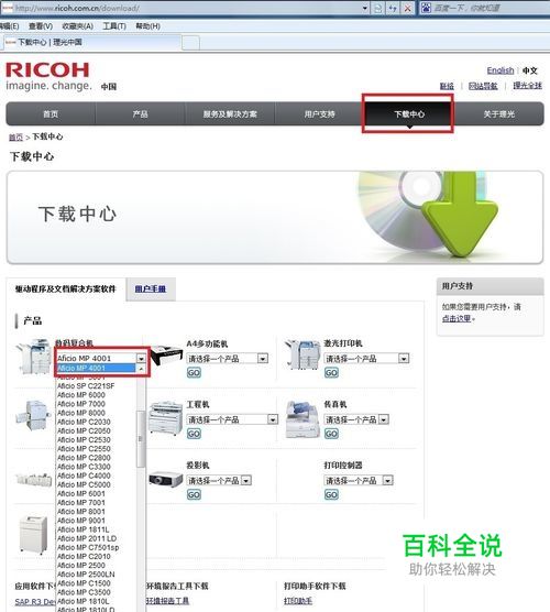 2、点击下载中心选择---数码复合机---Aficio MP 4001