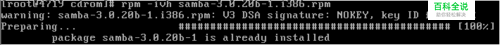 使用命令rpm –ivh samba-3.0.4.1 rh9.386.rpm安装samba,这里我已经安装了。