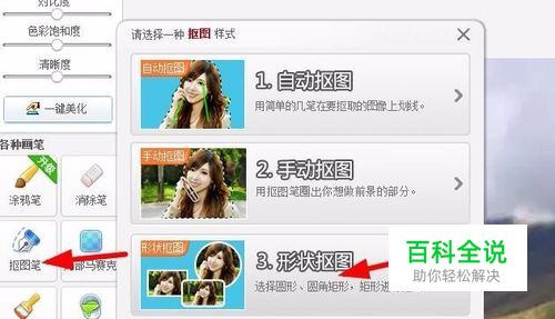 我们打开软件,导入要抠图的图片后,我们点击工具,选择一种抠图方式,这里以形状抠图为例。