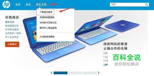 我的电脑是HP的,所以就进了HP的官网,在首页点击【售后支持】,再选择【下载驱动程序】,跳转到新页面,如图