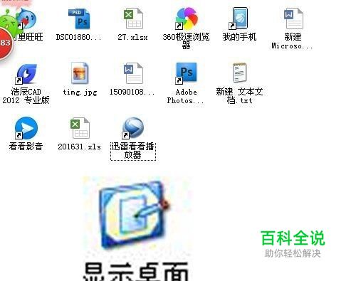 正常情况下,显示桌面快捷方式按钮应该出现在这里,现在没有了。