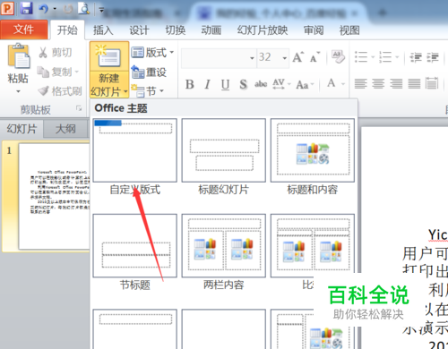 然后点击新建幻灯片里面就会有你自定义的版式,可以随便的添加,灵活的运用。