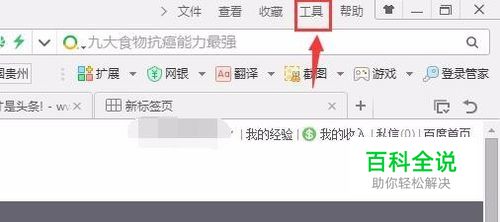 打开一个浏览器,然后点击右上角菜单栏的“工具”选项,如图所示: