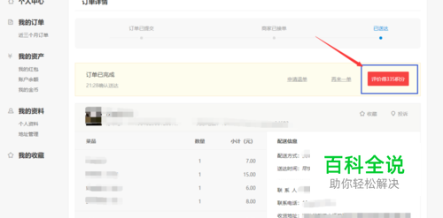 来到订单详情页面,我们可以再点击评价得多少积分那里