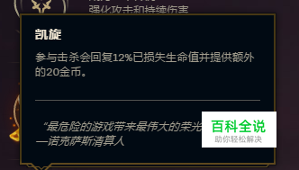 ‘致命一击’自然不用多说,卡莎进场切后排自然会被集火,企图击杀 卡莎 ,如果不能快速击杀,触发 ‘凯旋’那么危险很大,‘致命一击’的快速击杀能力可以弥补这一点;