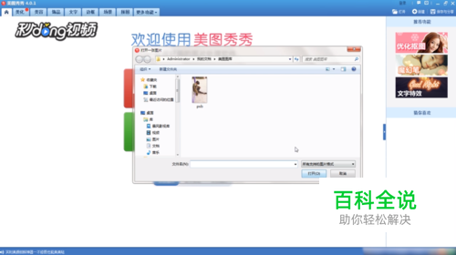 首先打开美图秀秀,点击“打开”选择要更改尺寸的主图。
