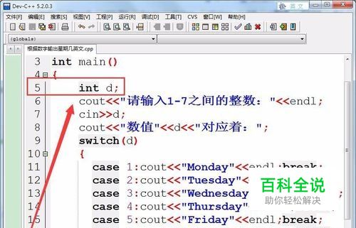 接着,读入一个1-7之间的整数,保存在变量d中。