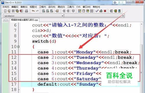 读入一个1-7的数字,用它表示星期一至星期日的某一天,请输出数字对应的星期几的英文名称,如何用C++实现这一运算呢?小编与大家分享编程。