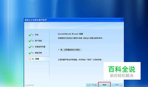 安装完成,会提示必须重启,如图。 按了完成按钮后,软件后台会配置一些服务等等,屏幕会闪几下,不用管就行了。 重启完成后就可以使用了。