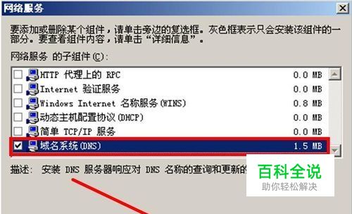 进入后我们再次点击【域名系统DNS】--【确定】在进行安装,如图